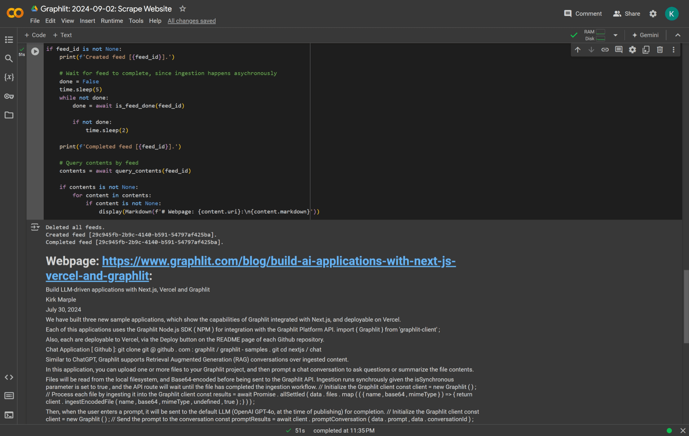 If you have used tools like Firecrawl before, Graphlit provides an end-to-end approach for web scraping and text extraction as well as text chunking and the creation of vector embeddings. Webpages are scraped, but they are also made RAG-ready and searchable.