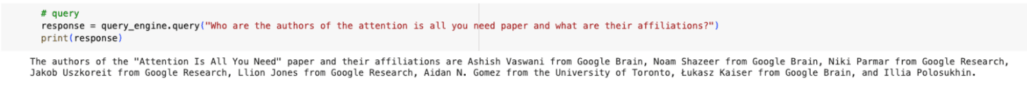 Finally, you will need to download the PDF you want to use and save it in a directory. For this example, I will be using the “Attention is all you need” paper by Vaswani et al. Here is the link to the pdf. I saved the pdf in a folder named “data”. In the next step we will see how we can load this PDF with LlamaIndex.