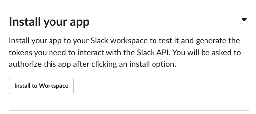 This finishes the Slack App setup. Now we will install the app to our workspace.