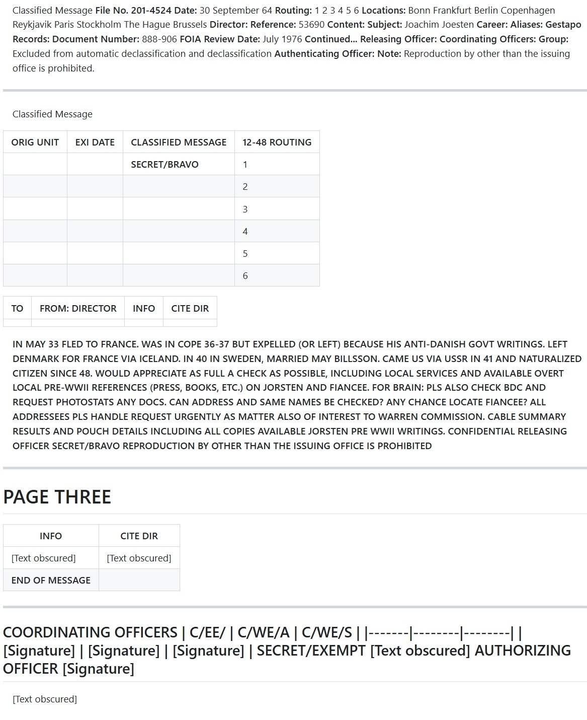 This PDF is three pages long, and appears to be a scanned classified message form.