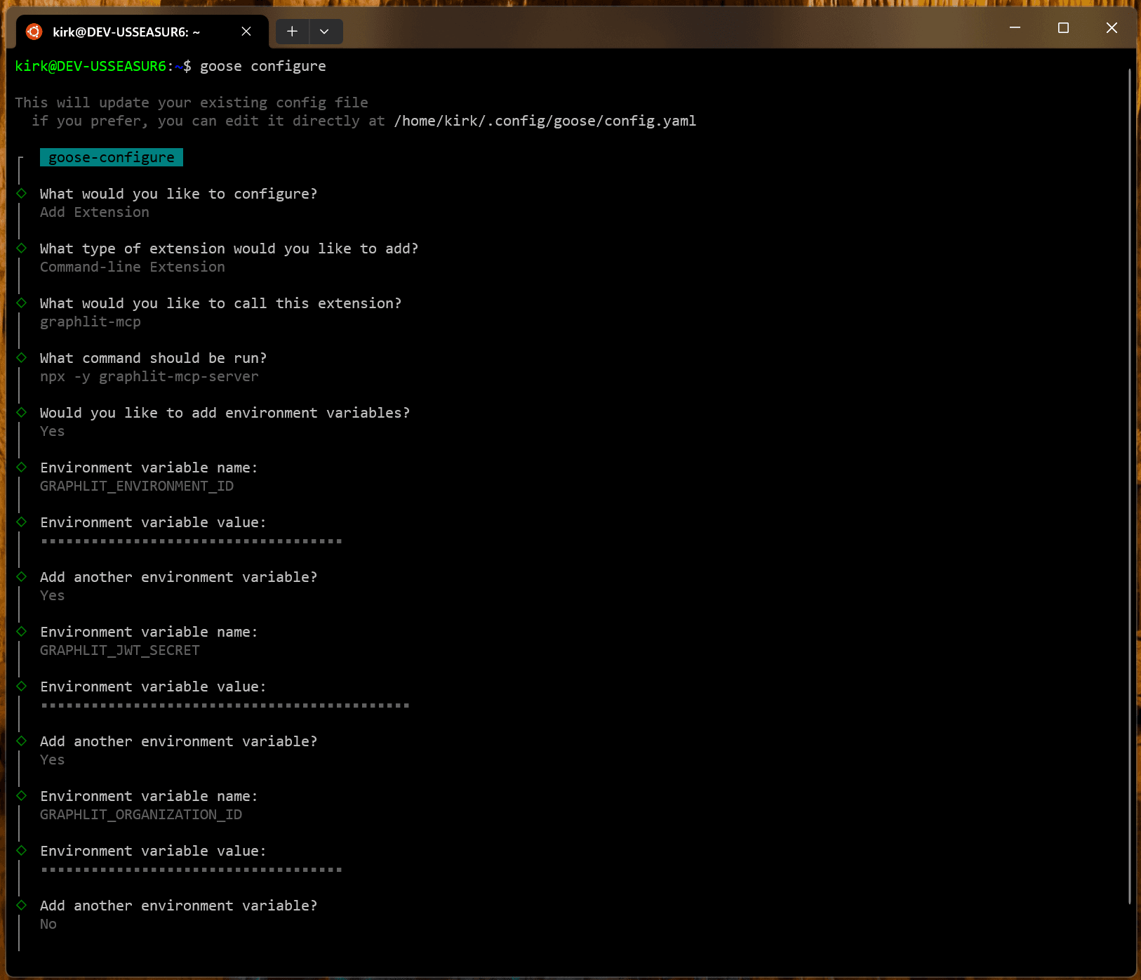 We have configured our Google client ID, client secret and refresh token in the Goose MCP client, so the Graphlit MCP Server doesn't need to ask for authentication.
