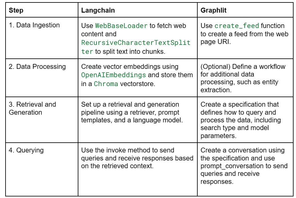 Throughout this article, we'll explore these differences in greater detail, examining how Langchain and Graphlit approach data ingestion, processing, storage, and retrieval, as well as their integration capabilities with AI models and external services. We'll provide concrete examples and code snippets to illustrate the key concepts and help you understand the implications for your specific use case.
