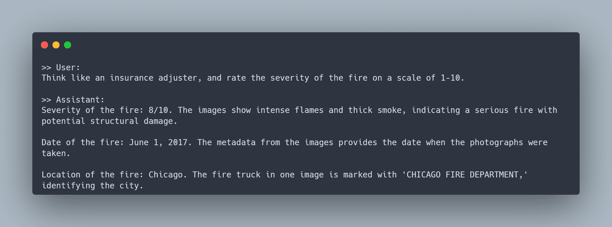 After a fire, insurance adjusters have to process the damage and evaluate claims. This can be a valuable use case for the insights provided by the GPT-4 Vision model.