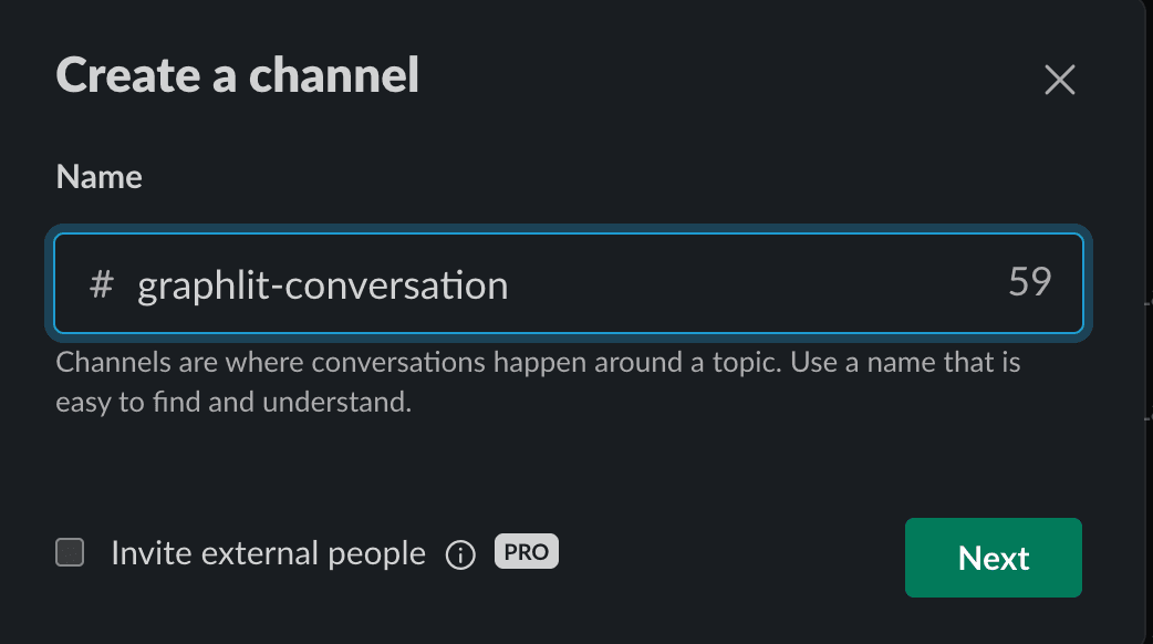 Finally, let’s create a new channel on Slack and add our bot to it. We will use this channel to run our conversational bot. Here I’ve created a new channel named #graphlit-conversation and add Graphlit Bot.