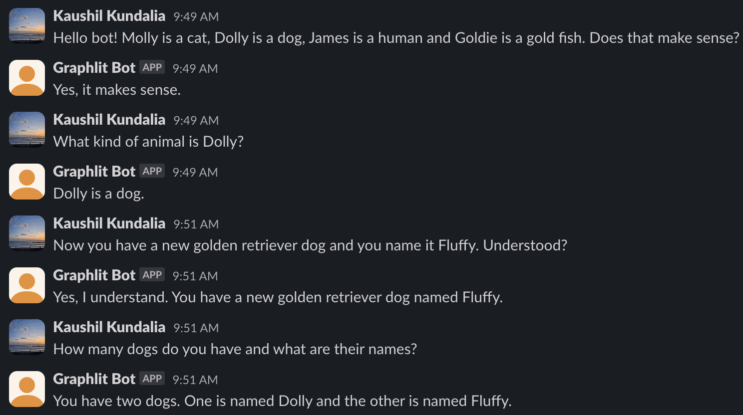 The code checks if the incoming payload contains an "event" key, signifying an event notification from Slack. Specifically, for message events without subtypes (i.e., standard messages, not updates or deletions). We extract user and text from the message and pass the text to the graphlit_request to get a response. The response from this operation is then conditionally posted back into the Slack channel, provided the message wasn't sent by the bot itself (thereby preventing the bot from responding to its own messages).